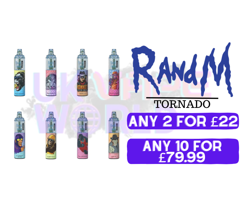 R & M Tornado bar Nicotine FREE 0% is here to shake the system with new 7000 puffs bars disposable device without any nic, cheaper alternative for customers and a great Rechargeable kits.