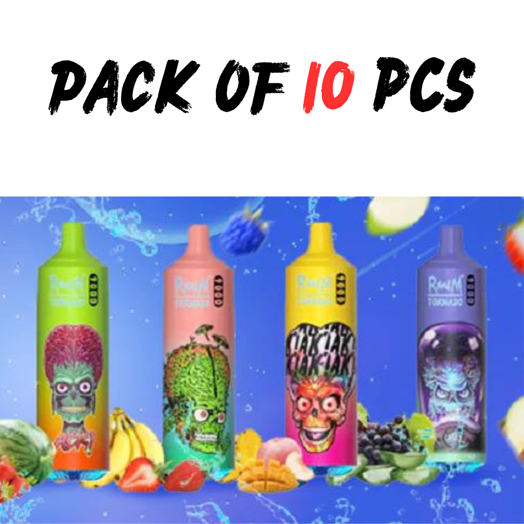 Bundles of 10 Pc - RandM Tornado 9k Puffs Disposable Vape Device - 2% nic salt 850mAh Rechargeable Type C