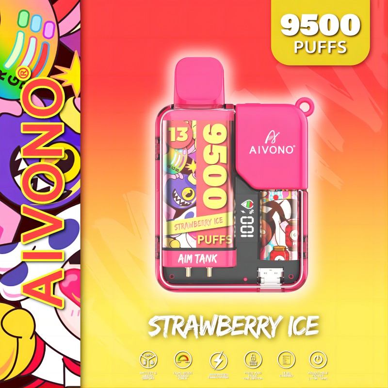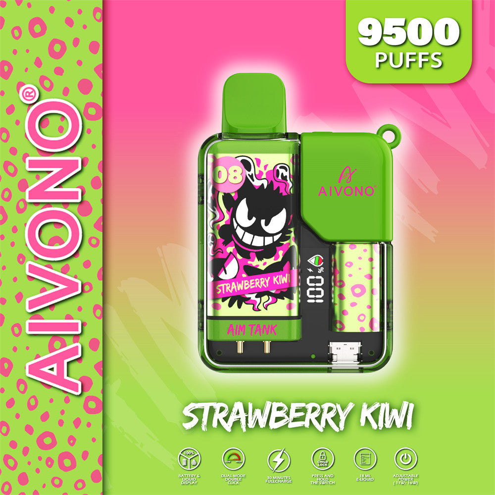 AIVONO AIM TANK 9500Puffs - a stylish and high-capacity vaping device that combines fashion with function. With its trendy cartoon-inspired exterior and LED display screen showing remaining battery life, this device is as visually appealing as it is practical. Offering an impressive 9500-puff capacity and a wide variety of flavors to choose from, the AIM TANK ensures a long-lasting and flavorful vaping experience. Embrace the perfect blend of style and performance with the AIM TANK 9500Puffs, designed to satisfy your cravings in a fashionable way.