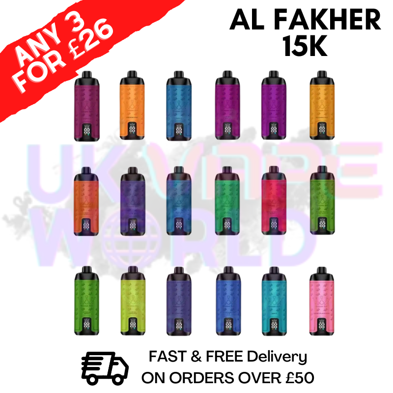 Shop Al Fakher Crown 15000 Puff 15K Bar Disposabl - ANY 3 FOR £26 device is a high-performance disposable vape offering an impressive 15,000 puffs.