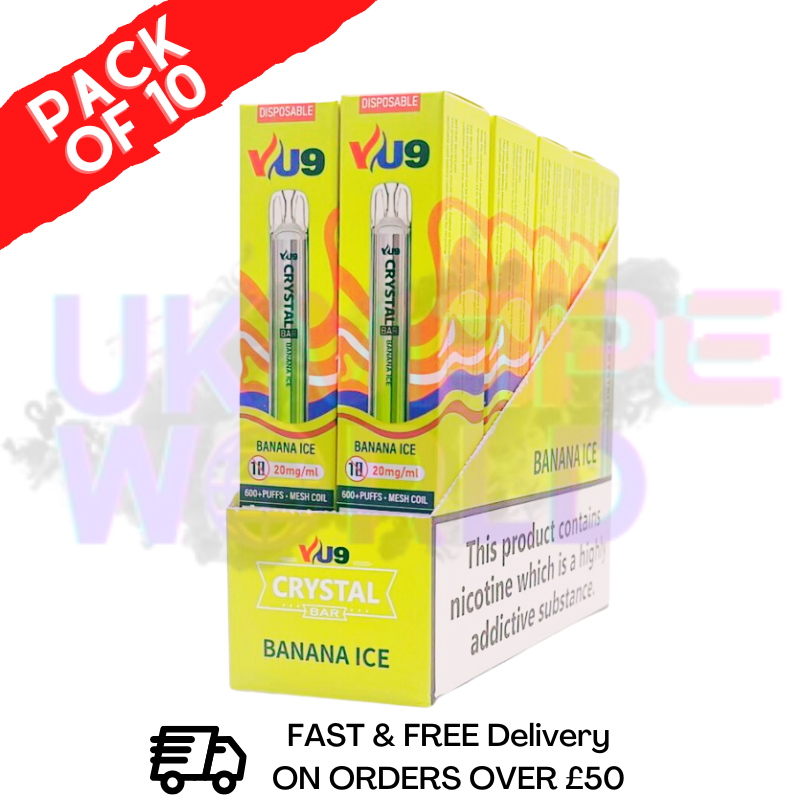 Banana ICE Crystal VU9 Classic Pack Of 10 Cheap Disposable offer a subtly sweet and refreshing experience. The light banana flavour makes for a perfect snack to enjoy any time of day.