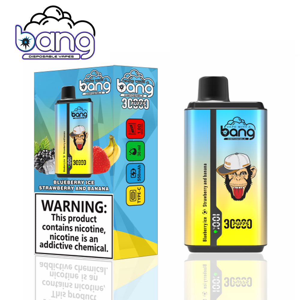 Bang 30000 Puffs rechargeable disposable vape with 12 flavors for choice,equipped with type-c charger ,and the mesh coil support a smoother vaping experience