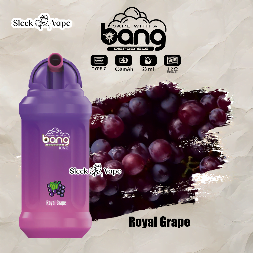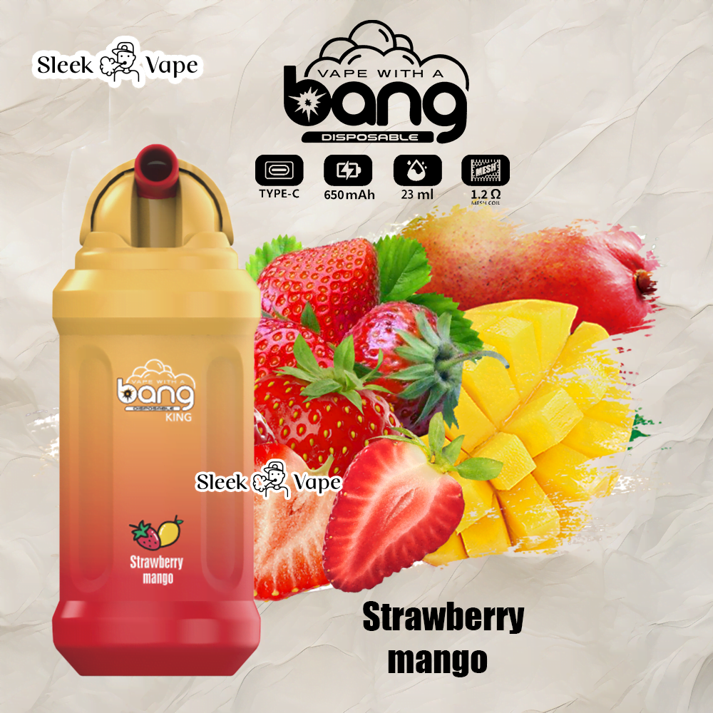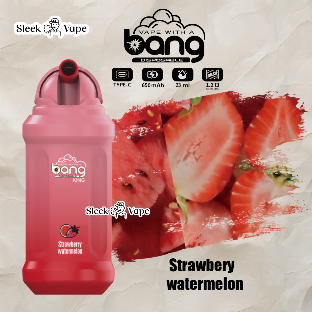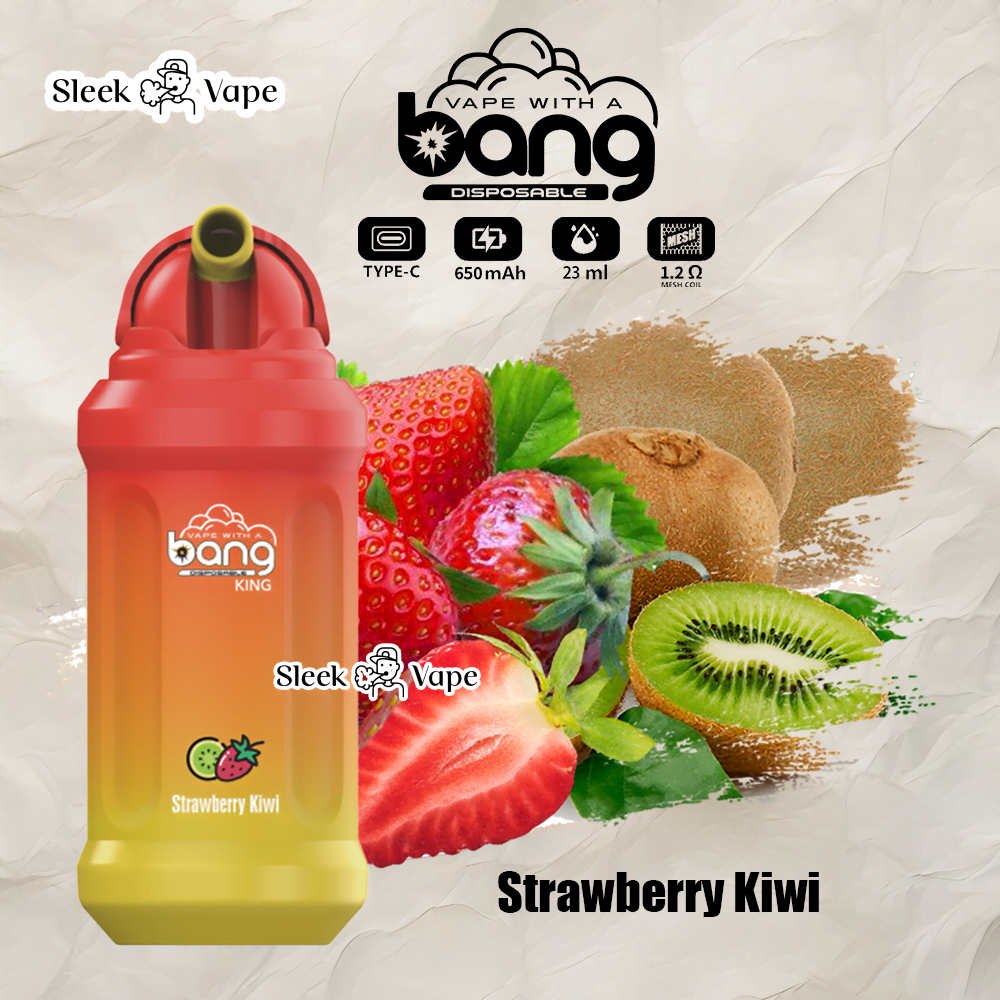 Introducing the Bang King 12000, the ultimate disposable vIntroducing the Bang King 12000, the ultimate disposable vape pod designed for convenience and flavor. This compact device boasts a built-in type-c rechargeable 850mAh battery and a generous 23ml pre-filled salt nicotine e-juice capacity, providing up to 12000 puffs of pure and satisfying satisfaction. The Mesh coil technology ensures a smooth and clean taste from the very first puff to the last, delivering an unparalleled vaping experience. Don’t miss out on the fantastic flavor and convenience of the Bang King 12000 – your perfect companion for on-the-go vaping.
