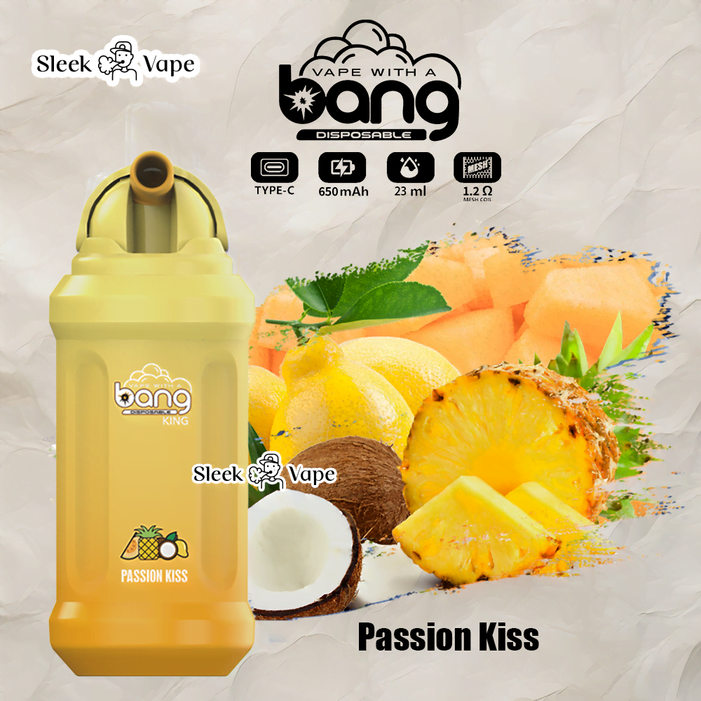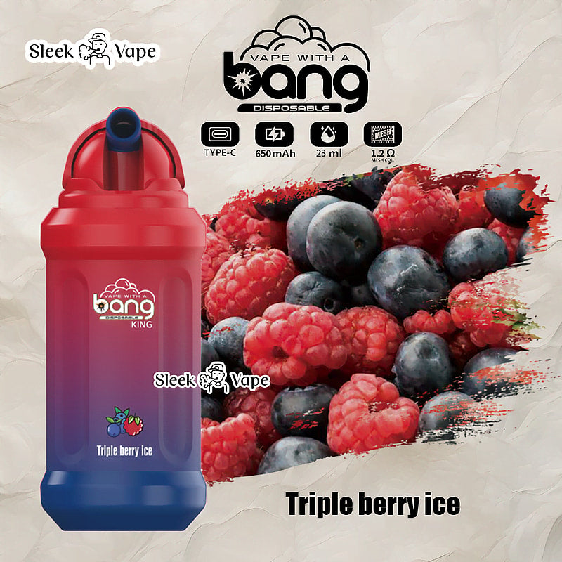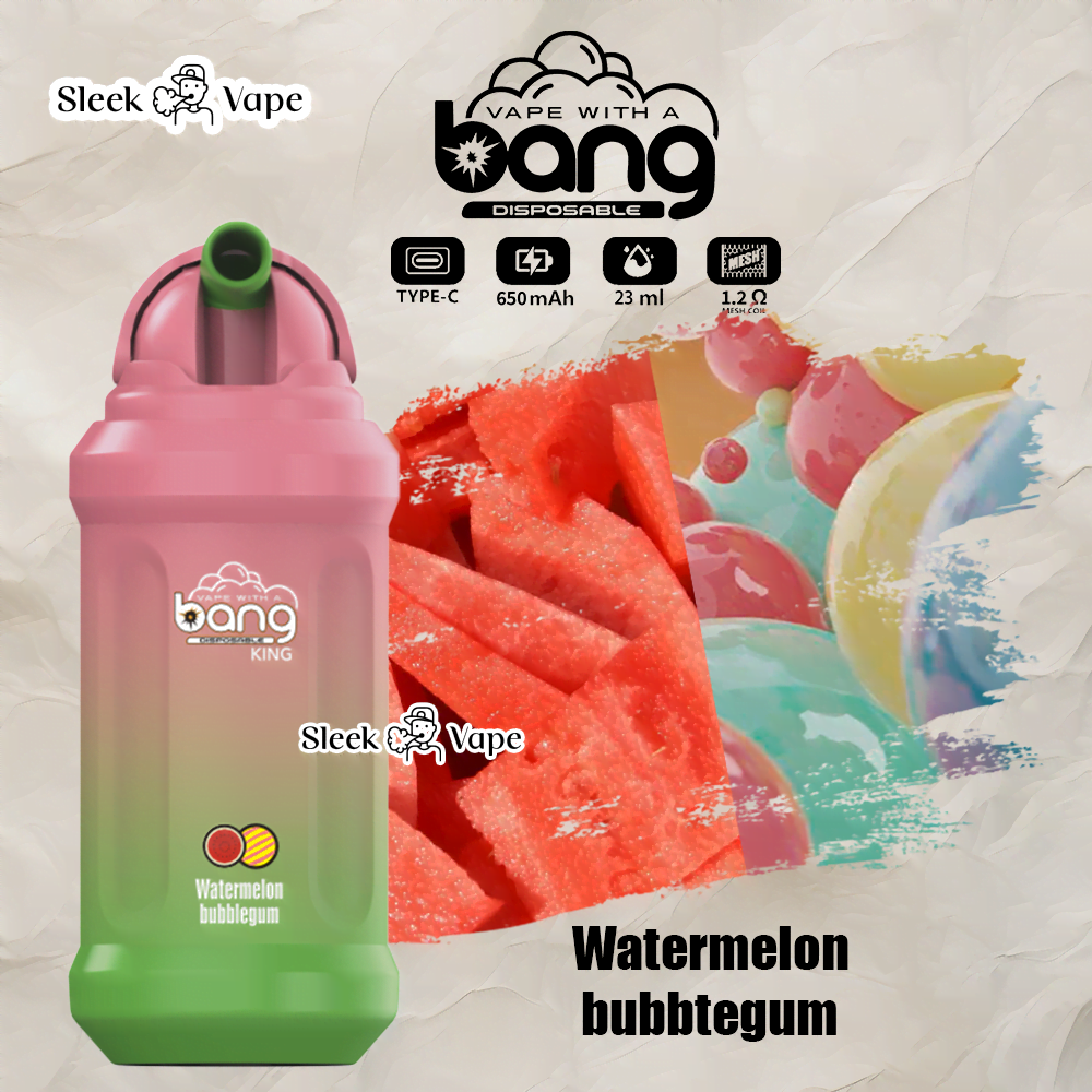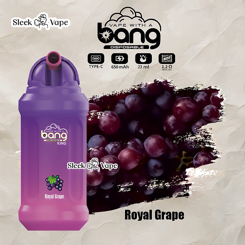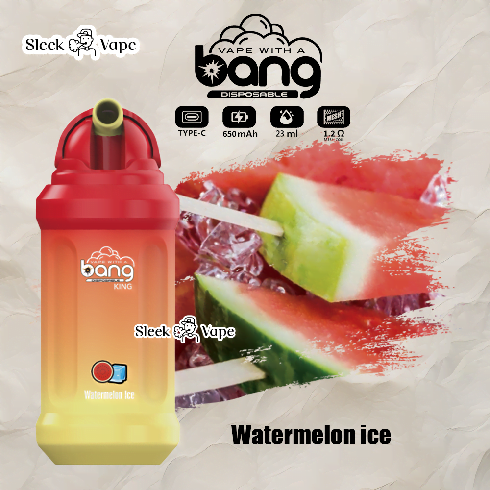 Introducing the Bang King 12000, the ultimate disposable vIntroducing the Bang King 12000, the ultimate disposable vape pod designed for convenience and flavor. This compact device boasts a built-in type-c rechargeable 850mAh battery and a generous 23ml pre-filled salt nicotine e-juice capacity, providing up to 12000 puffs of pure and satisfying satisfaction. The Mesh coil technology ensures a smooth and clean taste from the very first puff to the last, delivering an unparalleled vaping experience. Don’t miss out on the fantastic flavor and convenience of the Bang King 12000 – your perfect companion for on-the-go vaping.