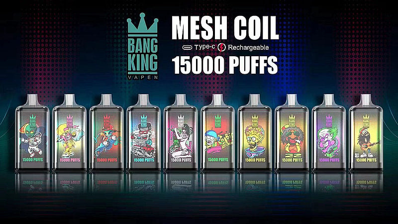 Bang King 15000 Disposable Vape Device E-Cigarette is one of the most popular and innovative products in the vaping market today. It is a rechargeable disposable vape device that has a massive 25ml e-juice capacity filled with 0%, 2%, 3% or 5% Nic Salt. It has a powerful 650mAh battery that can support up to 15000 puffs of smooth and satisfying vapor. It also has a unique RGB light design that changes color according to the battery level and the flavor you choose.
