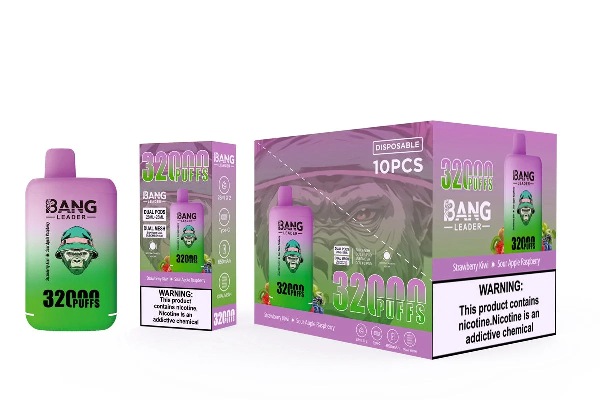 Bang Leader 32000 Puffs Disposable Vape (0% to 5% Nicotine) - Dual Pods, 26ml+26ml E-Liquid 650mah Type-C Rechargeable 18 Flavors