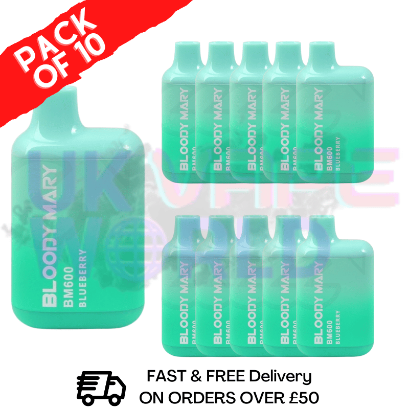 Blueberry - Bloody Mary 600Puff Disposable Pack Of 10 sweet and tart blueberry flavor. It's a great choice for those looking for a fruity vape experience.!