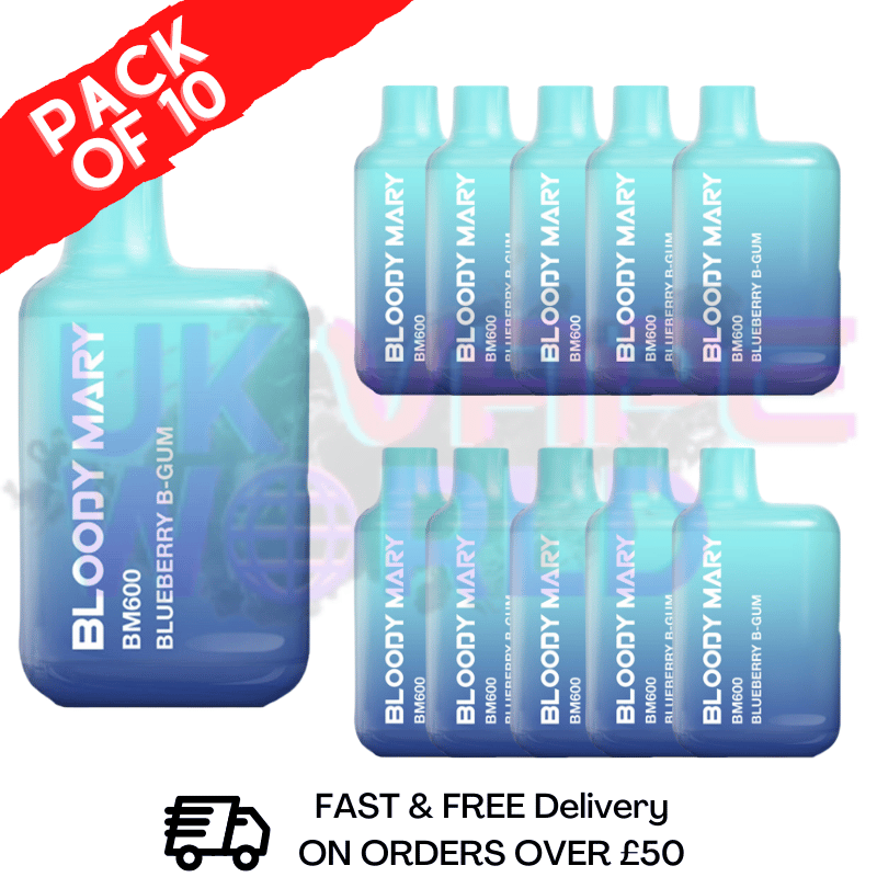 Blueberry Bubblegum - Bloody Mary 600Puff Disposable Pack Of 10 unique combination of tart blueberry and sweet bubblegum is sure to deliver an intense flavour experience!