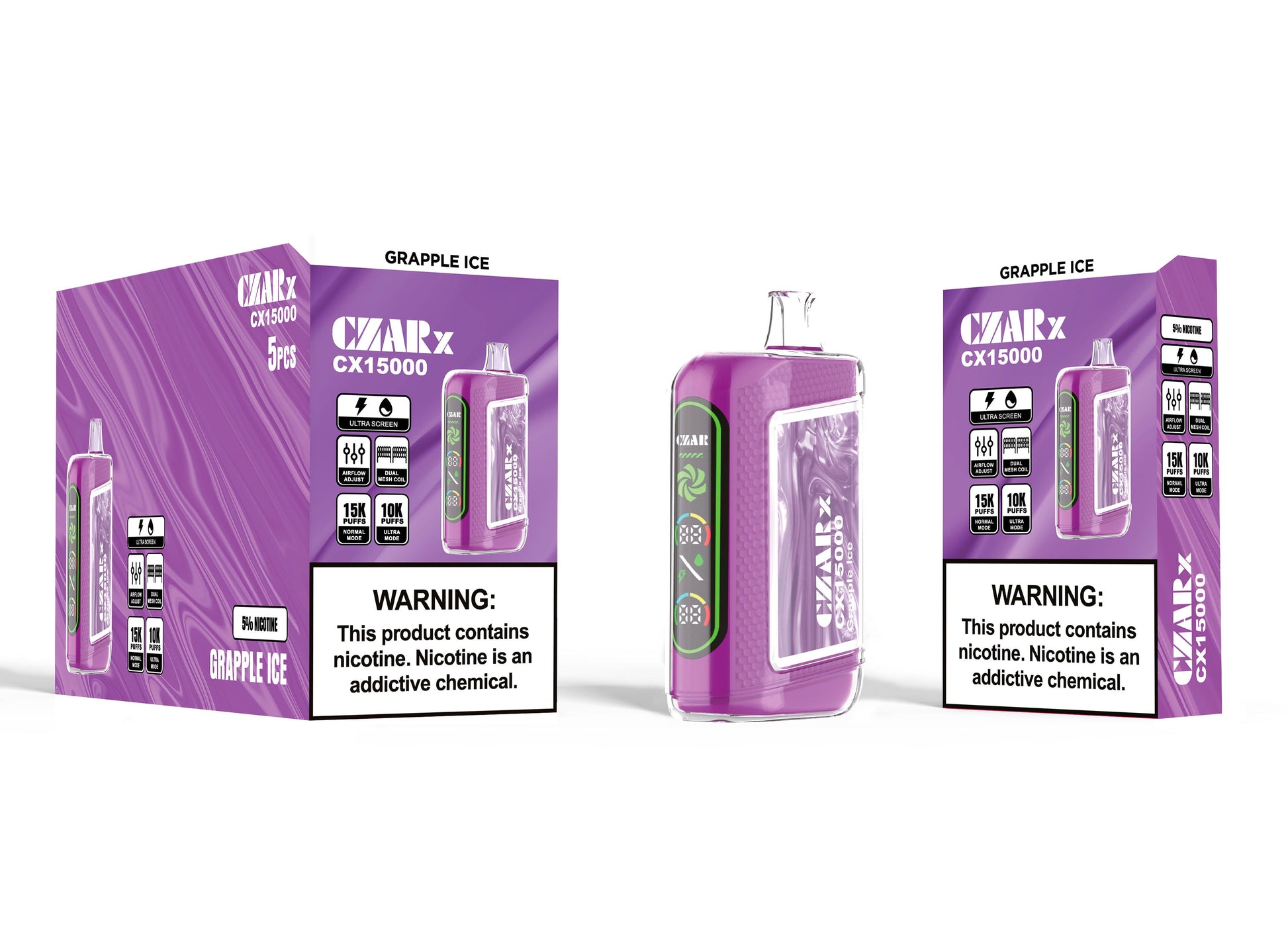 No need to grapple with anyone over this choice! It is a winner! Embark on a fun taste adventure with CZAR CX 15000 Vape Grapple Ice Flavor! It’s a one-of-a-kind blend of fresh apples and ripe grapes, highlighted by a memorable menthol finish.