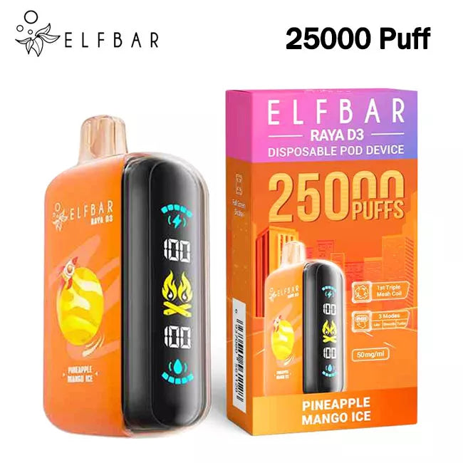 Elf Bar 25000 Puffs Raya D3 Vape 5% Nicotine 3D Screen Original 23ml E-liquid 850mAh Battery 20 flavors
