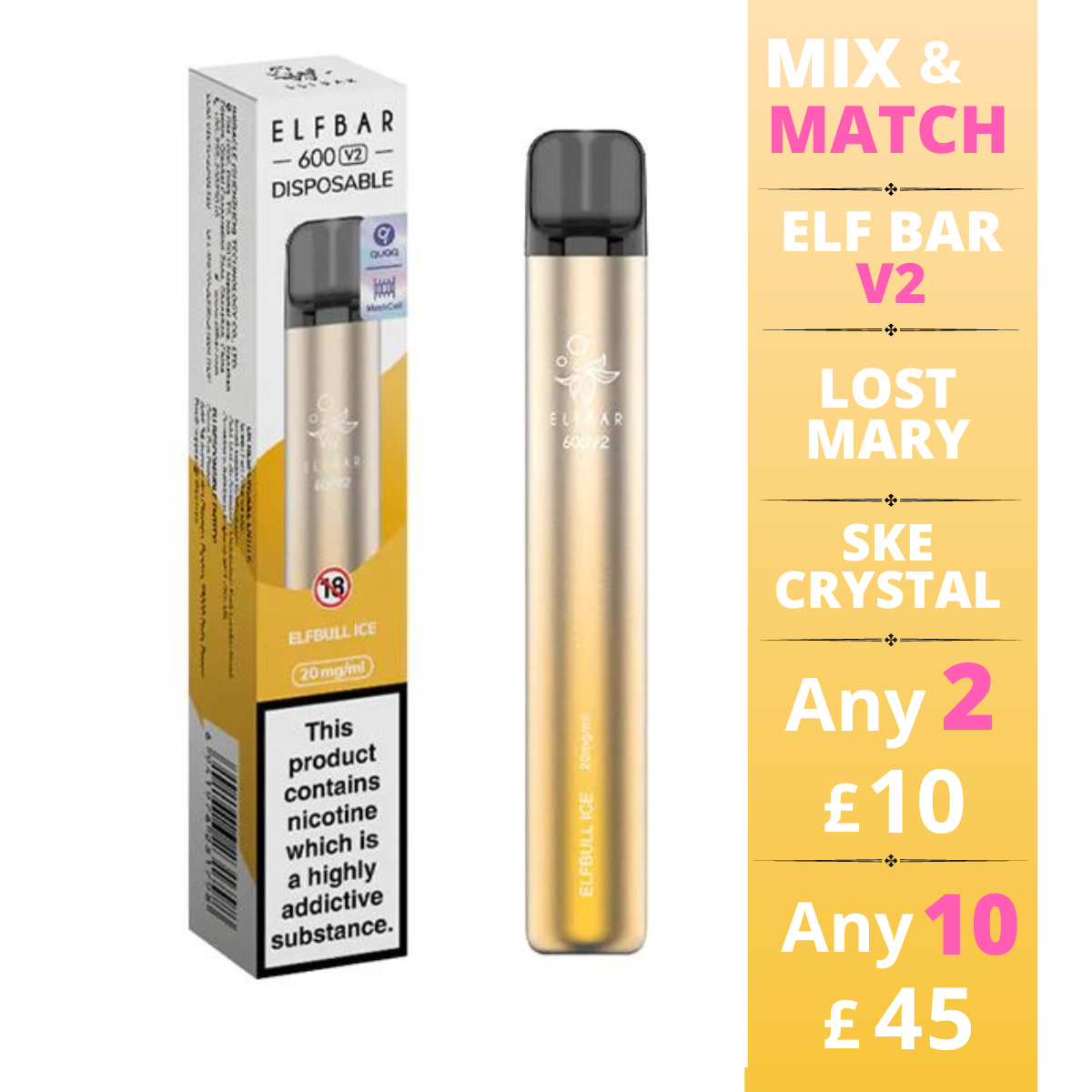 each bar contains 2ml of nic salt e-liquid that will last up to 600 puffs. The 20mg nicotine strength makes it suitable for any vaper, while providing a smooth throat hit.