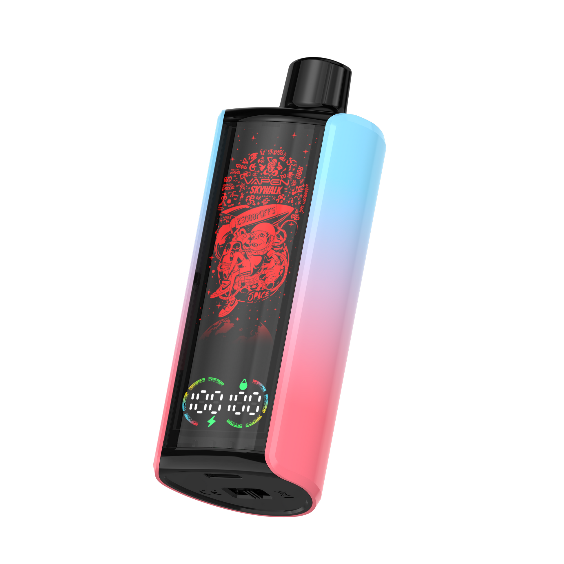 The VAPEN SKYWALK 25K is a stylish disposable vape featuring a 30ml e-liquid capacity and a huge puff count of 25.000 puffs. With a 650mAh battery. Type-C charging. and adjustable airflow. it combines fashion and technology. The device features a smart oil and battery display. allowing users to easily monitor e-liquid levels and battery status. It also lights up with RGB colors during use and uses low-resistance mesh coils and consistent taste technology for a stable flavor experience.