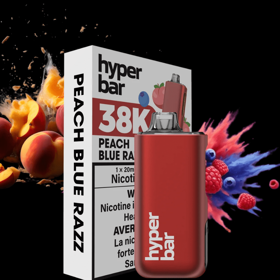 Lasting up to 38,000 puffs, the Hyper Bar BE38000 Disposable offers reliable performance. Enjoy the vibrant mix of peach and blue raspberries, delivering a refreshing all-day vape.