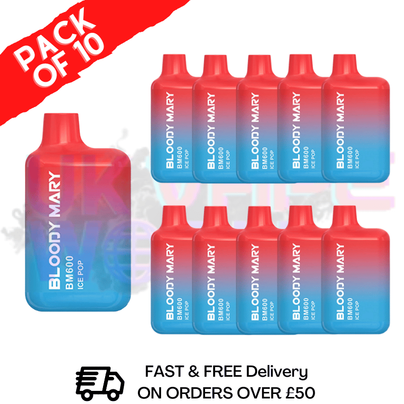 ICE POP Bloody Mary 600Puff Disposable Pod Kit 10 popsicles bursting with flavor that will satisfy your taste buds. Enjoy a perfect blend of tart and sweet sensations with a hint of spiciness, perfect for hot summer days.