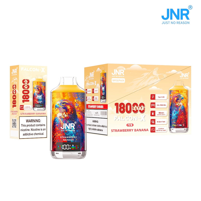 JNR Falcon X 18000 puff box of 10 Disposable Vape is an innovative device that is perfect for every vaping enthusiast. Its sleek design. extensive battery and quality performance make it an ideal device. This disposable vape truly stunts you when you use it and enhances your vaping. Therefore. it's massive 18000 Puff count is the main feature that attracts vapers and provides you with a smooth and satisfying puff each time.