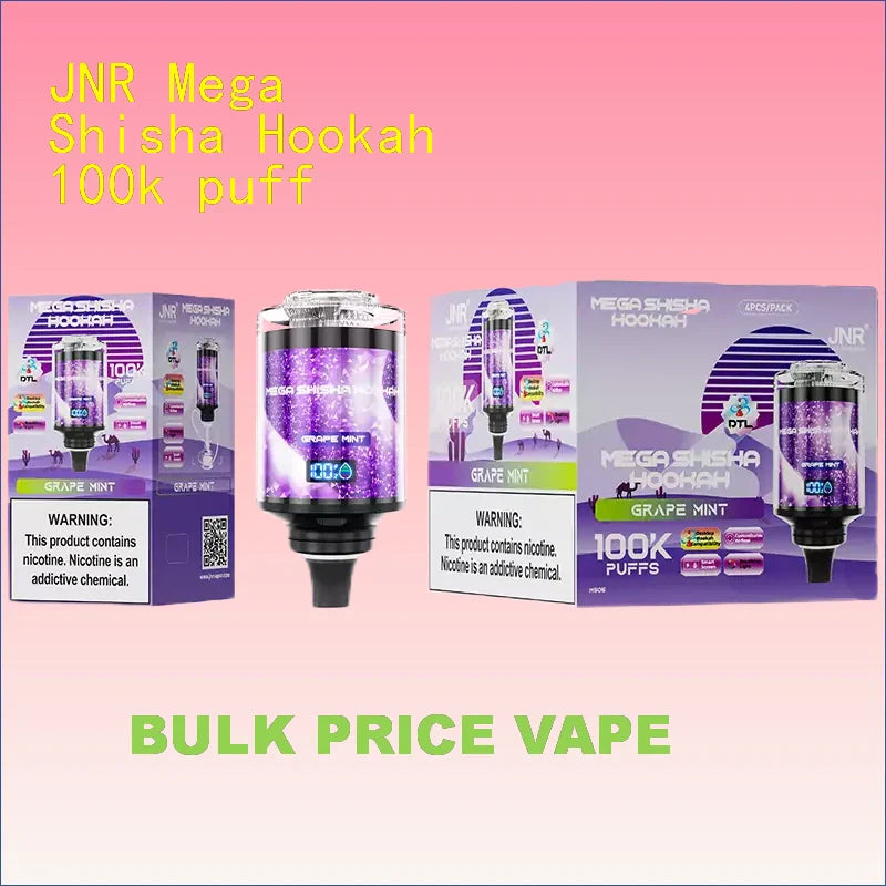JNR Mega Shisha Hookah 100k puff Discount Price Best Sale takes vaping to new heights with an astounding disposable 100000 puffs capacity, offering endless enjoyment for hookah enthusiasts. 100k of jnr shisha vape features desktop hookah compatibility, delivering a traditional shisha experience in a modern, portable format. Equipped with dual mouthpieces, shisha Hookah’s perfect for sharing or switching between flavors. The smart screen and breathing light provide real-time updates and a sleek aesthetic, making the JNR 100000 vape both functional and stylish.