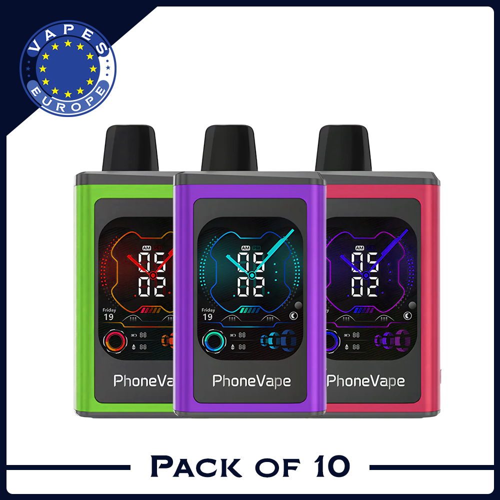 JNR Phone Vape 30000 Puffs (Box of 10) Latest Smart 20mg Nicotine 19ML 1000 mAh Battery 10 Flavors Disposable Vape
