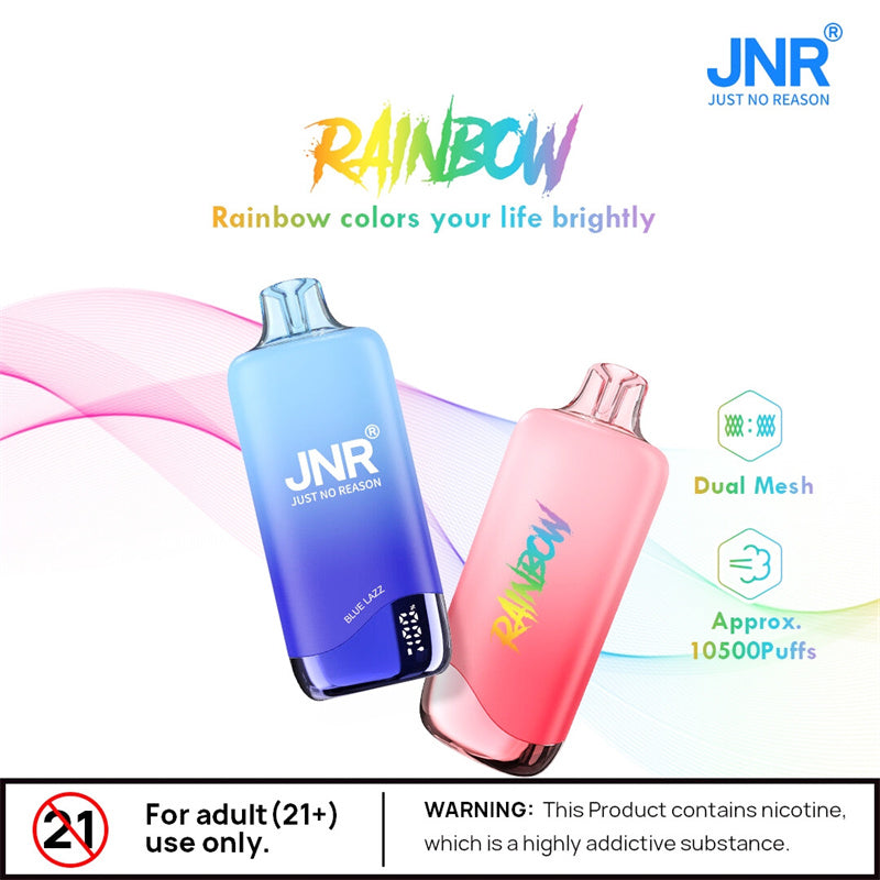Discover the JNR Rainbow 10500 puff Disposable Vapes—where style meets performance. creating a vibrant and satisfying vaping journey!