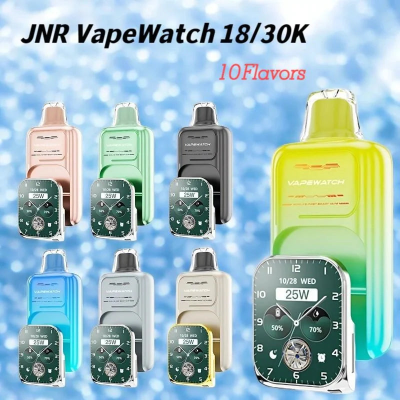 JNR VapeWatch 18/30K Disposable Best Price Good Sale offers a unique vaping experience with its innovative design, combining functionality with style. Featuring a detachable watch-style casing, this disposable 18/30K vape is perfect for those who want a sleek, portable device that blends into daily wear. Equipped with a powerful 1000mAh rechargeable battery and a 19ml oil capacity,which provides up to disposable 18/30K puffs. Available in 10 flavors, vape of JNR 18/30K caters to all flavor preferences, from fruity to menthol.