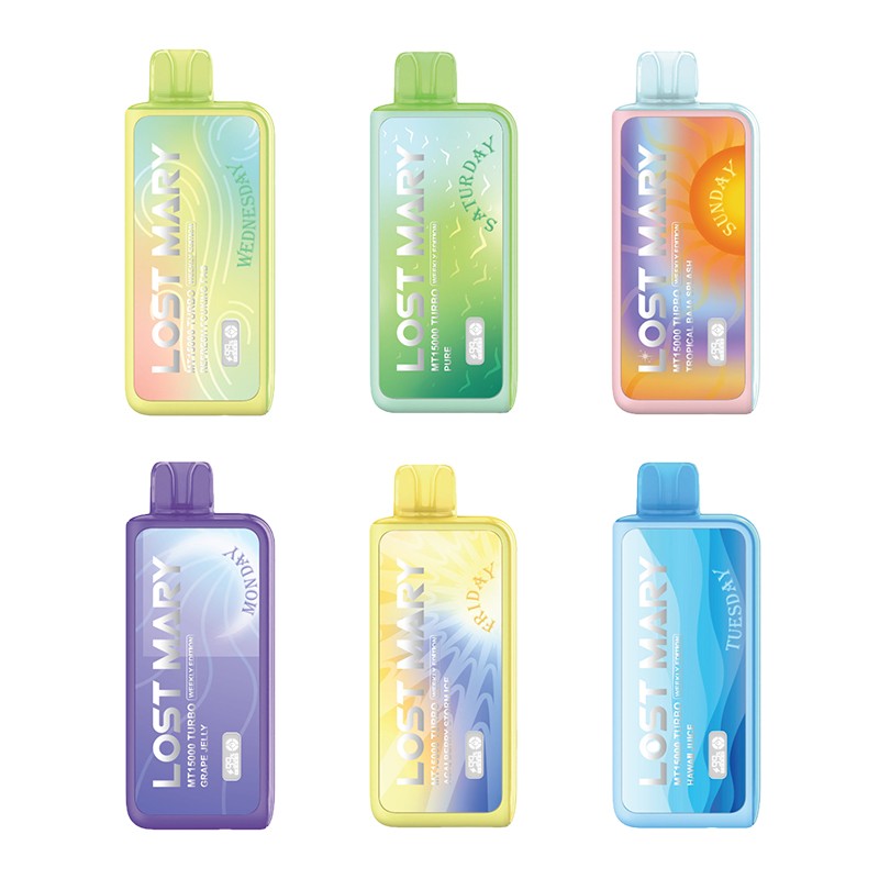 Elevate your vaping experience with the Lost Mary MT15000 Turbo Weekly Edition at VapeNear Online Vape Shop, and indulge in a variety of rich, flavorful puffs from Monday to Sunday.