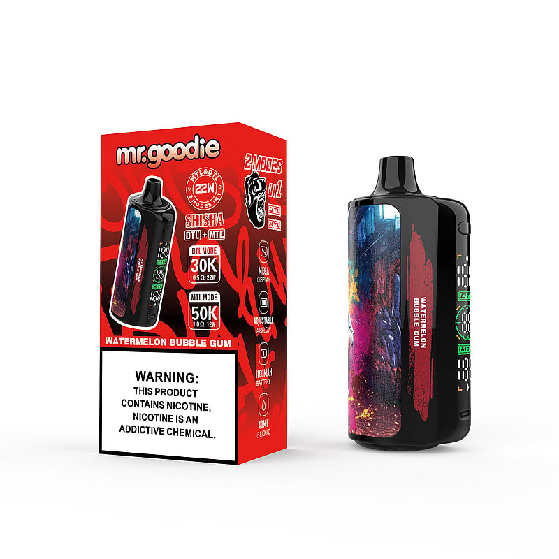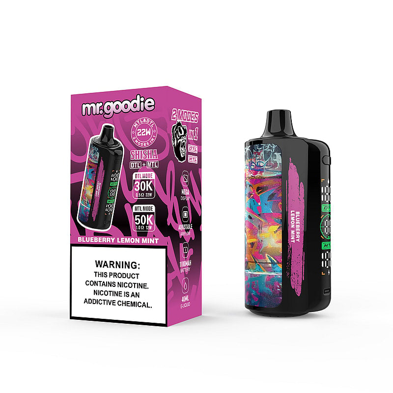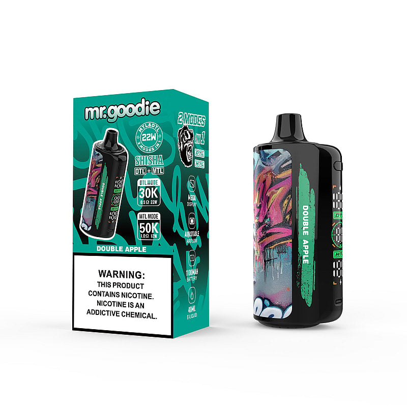 The Mr.Goodie Shisha 50000 Puffs DTL/MTL Disposable Vape delivers powerful performance and flexible vaping modes. Switch between DTL mode (30,000 puffs) and MTL mode (50,000 puffs) for your preferred style. Featuring a Mega Display, adjustable airflow, and a strong 1100mAh battery, it ensures a smooth and customizable experience. With 3mg/6mg nicotine salt options and a large 40ml e-liquid capacity, it offers long-lasting satisfaction. Enjoy fast recharging via Type-C port and choose from 12 unique flavors for all-day enjoyment.