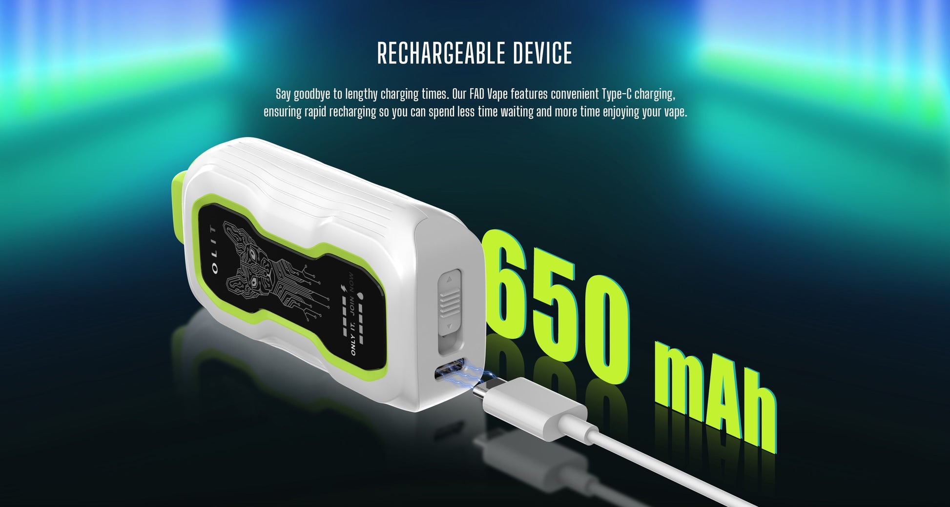 Meet the OLIT FAD Disposable Vape! Offering an impressive 20,000 puffs and a generous 22ml e-liquid capacity, it highlights a dual lit mesh coil for enhanced flavor. The 650mAh rechargeable battery comes with an LED design, allowing you to monitor both battery and liquid levels while showcasing the unique FAD design. With adjustable airflow and a resistance of 1.2Ω, this vape provides a enjoyable experience for every vaper.