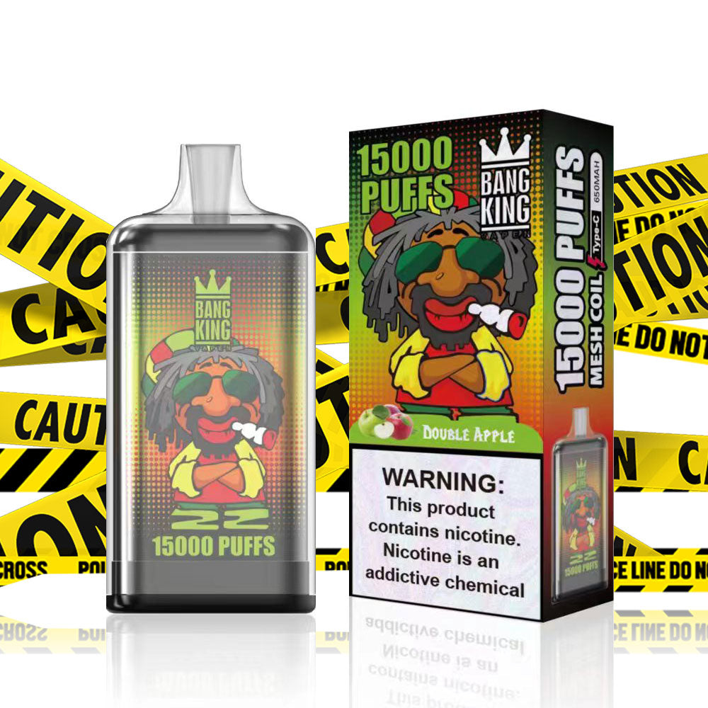 Bang King 15000 puff rechargeable disposable vape with 20 flavors for choice,equipped with type-c charger ,and the mesh coil support a smoother vaping experience