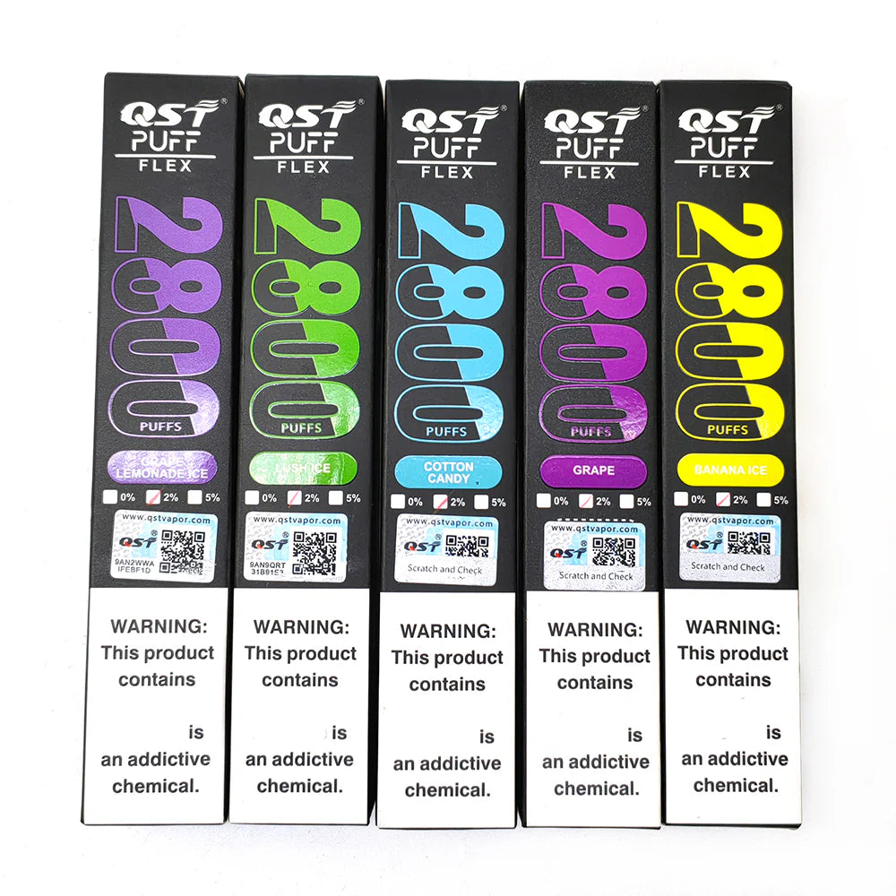 QST Puff Flex 2800 Puffs Vape Disposable Wholesale Electronic Cigarettes 0% 2% 3% 5% 8 ml Pod 850mah Battery Pen Minimum Order 100pcs