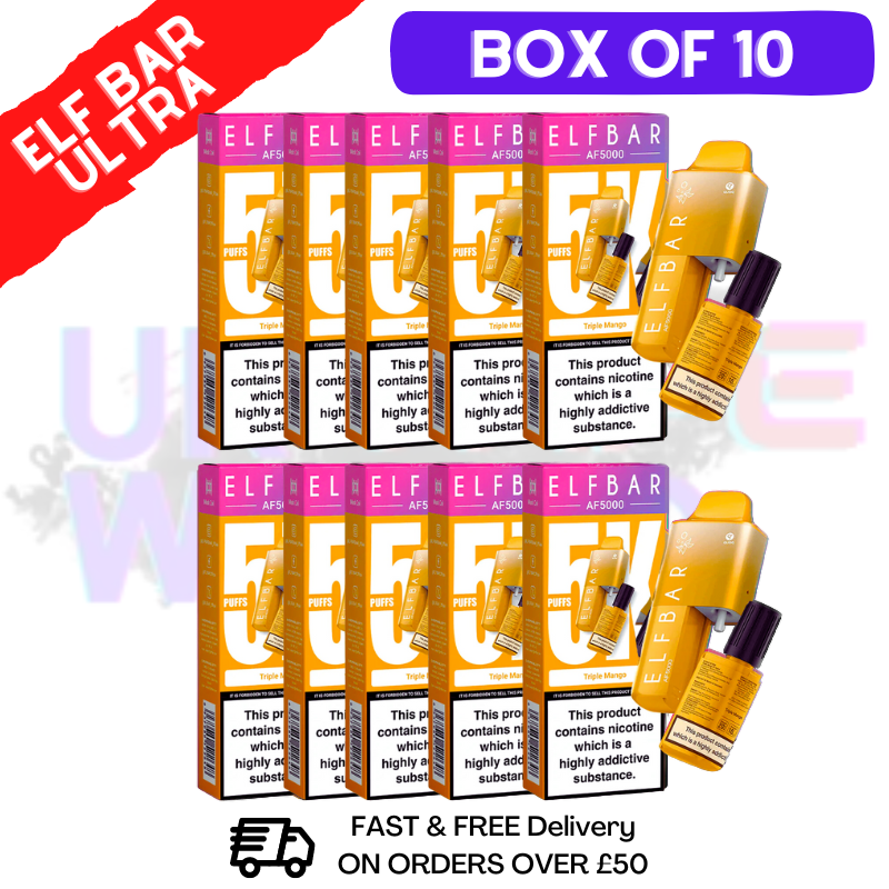 Triple Mango ELF BAR AF 5000 5K Vape Puff 5000Puff Bars is a luscious blend of three mango varieties, resulting in a tropical and sweet flavor experience that captures the essence of ripe and juicy mangoes. A perfect addition to the ELF 5K Range!