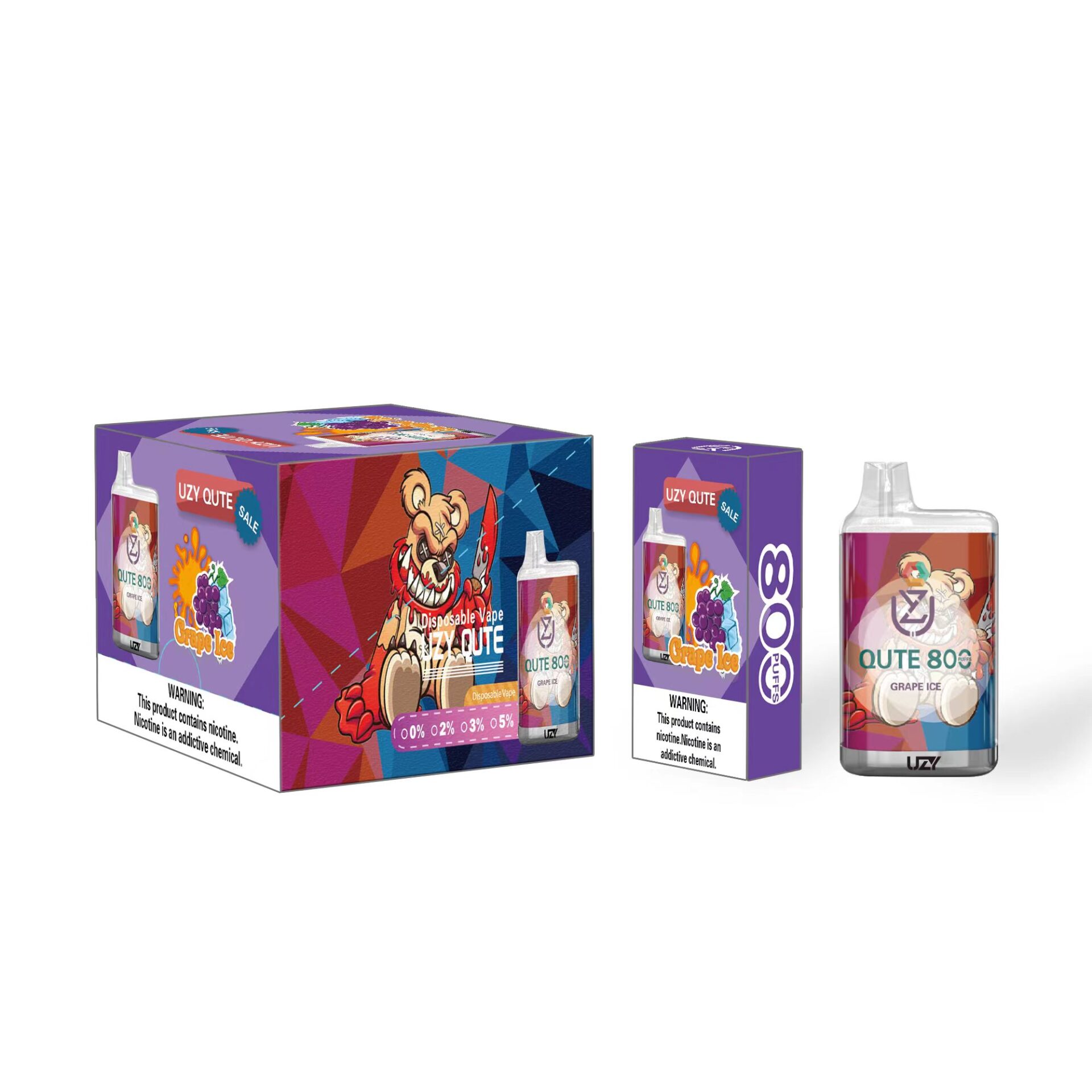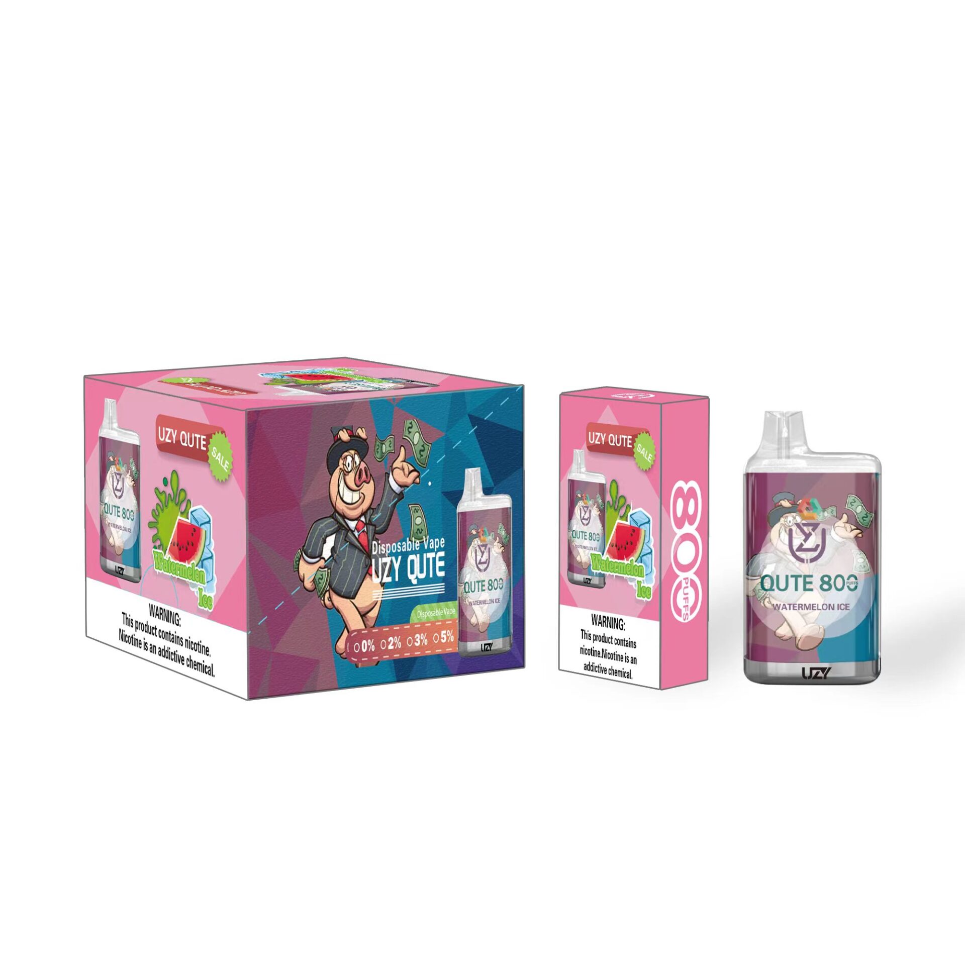 The UZY QUTE 800 puffs is a disposable electronic cigarette. With a built-in 550mAh battery and 3.0ml of pre-filled nicotine salt e-liquid, this compact device delivers up to 800 puffs of smoke, and the 1.2 Ohm mesh coil RGB Light delivers pure flavor for a fantastic taste from the first to the last puff.
