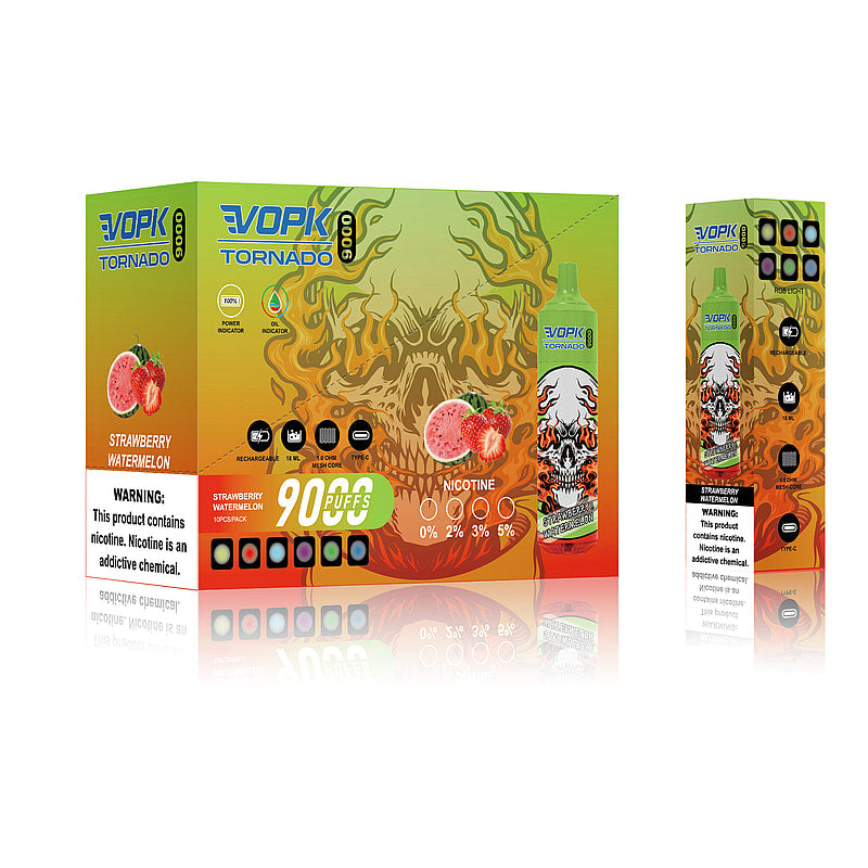 This rechargeable design solves the problem of battery life commonly found in disposable vapes. Packaged with 10 devices per box and 200 per carton, it’s ideal for both retail and wholesale buyers. Whether you prefer fruity, minty, or icy flavors, the VOPK Tornado 9000 offers a wide range of options to fit your vaping needs.