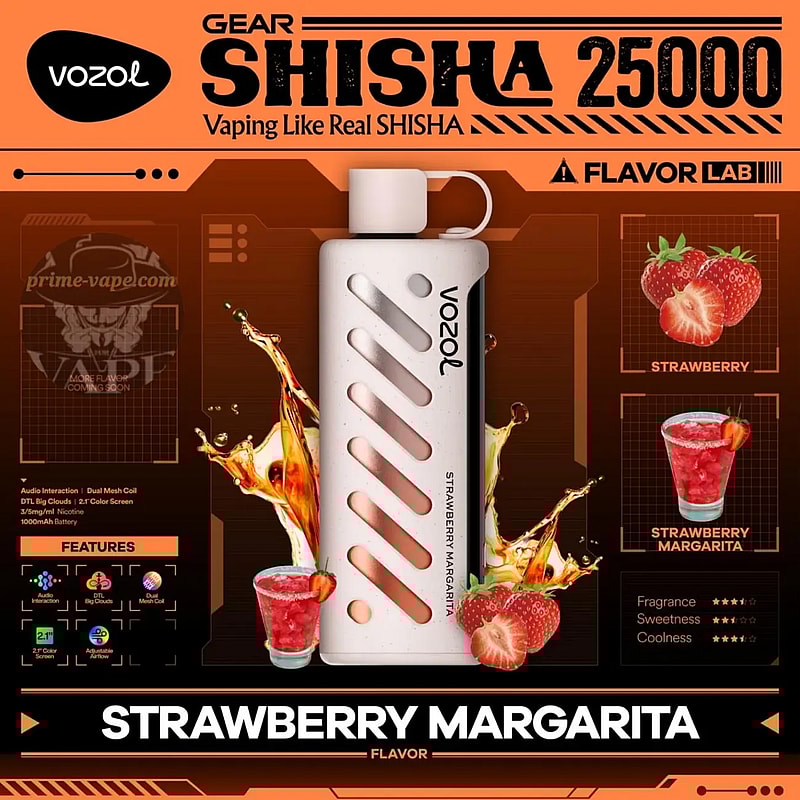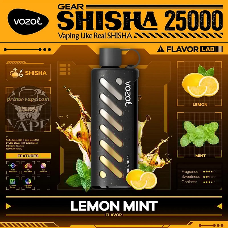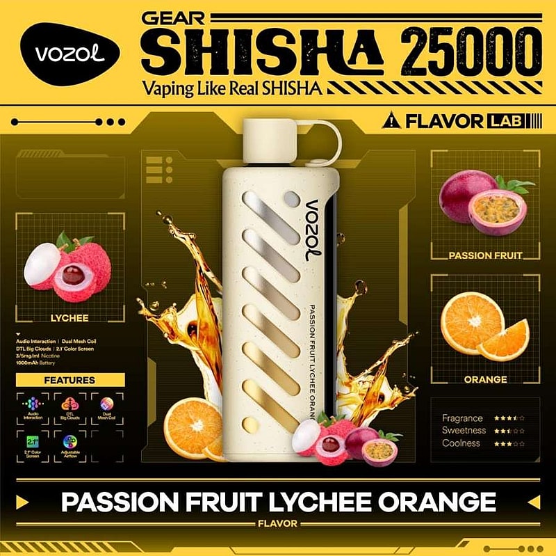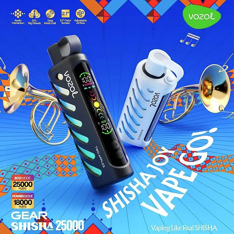 The Vozol Gear Shisha 25K Puffs Disposable Vape features dual power modes, delivering up to 25,000 puffs with a 1000mAh battery and 25mL e-liquid. Enjoy smooth vapor through its dual mesh coil, adjustable airflow, and fluid dynamics airway. A 2.1-inch color screen with a smart chip provides real-time control. With 21 flavors, a leak-resistant design, and audio-interactive system, it ensures a stylish, long-lasting, and personalized vaping experience.