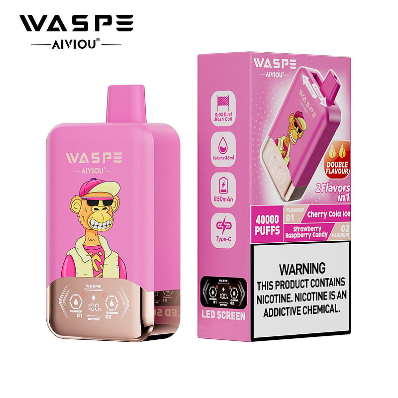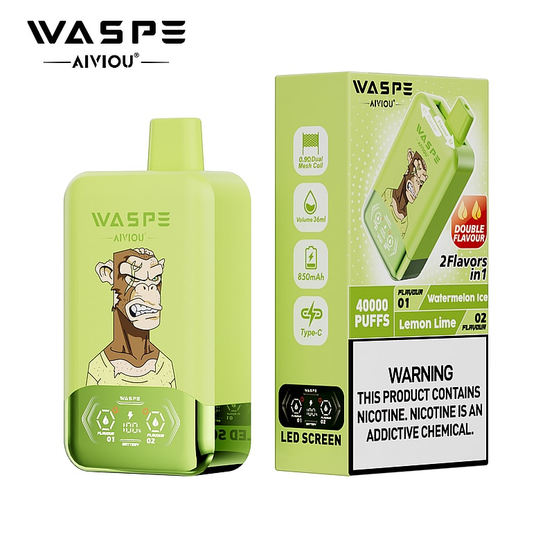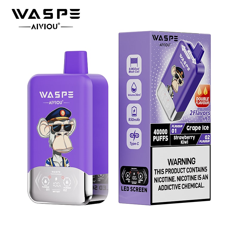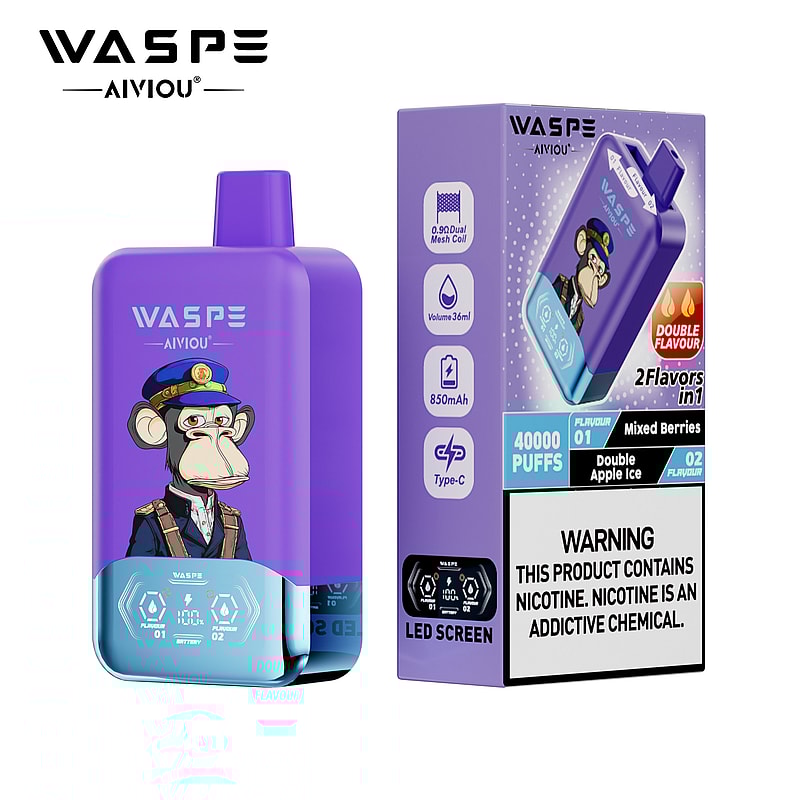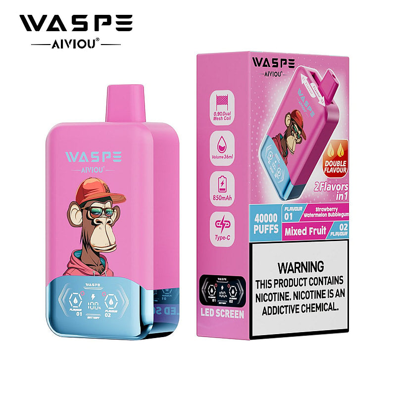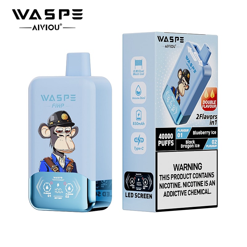 The WASPE 40000 Puffs is the perfect choice for vapers who want a long-lasting, flavorful, and high-performance disposable device. With its impressive puff capacity, dual mesh coils, and dual-flavor option, this vape provides a truly unique and satisfying experience. Plus, the smart LED display and fast charging capabilities ensure that you’re always in control.